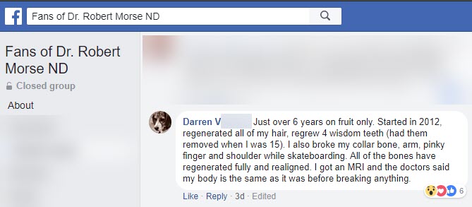 Just over 6 years on fruit only. Started in 2012, regenerated all of my hair, regrew 4 wisdom teeth (had them removed when I was 15). I also broke my collar bone, arm, pinky finger and shoulder while skateboarding. All of the bones have regenerated fully and realigned. I got an MRI and the doctors said my body is the same as it was before breaking anything.