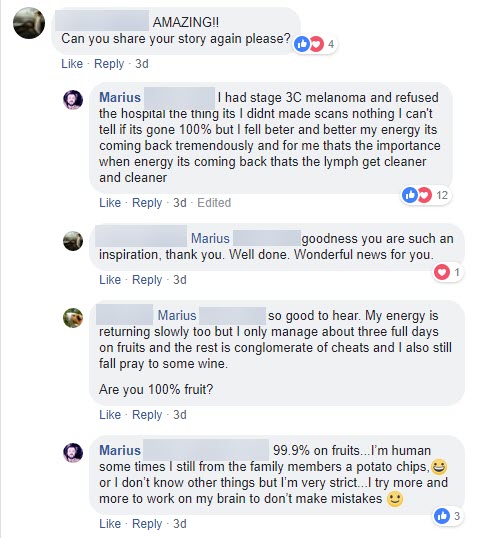 I had stage 3C melanoma and refused the hospital the thing its I didnt made scans nothing I can’t tell if its gone 100% but I fell beter and better my energy its coming back tremendously and for me thats the importance when energy its coming back thats the lymph get cleaner and cleaner.