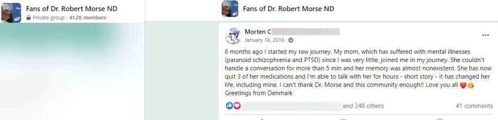 6 months ago I started my raw journey. My mom, which has suffered with mental illnesses (paranoid schizophrenia and PTSD) since I was very little, joined me in my journey. She couldn't handle a conversation for more than 5 min and her memory was almost nonexistent. She has now quit 3 of her medications and I'm able to talk with her for hours - short story - it has changed her life, including mine. I can't thank Dr. Morse and this community enough!! Love you all ![]()