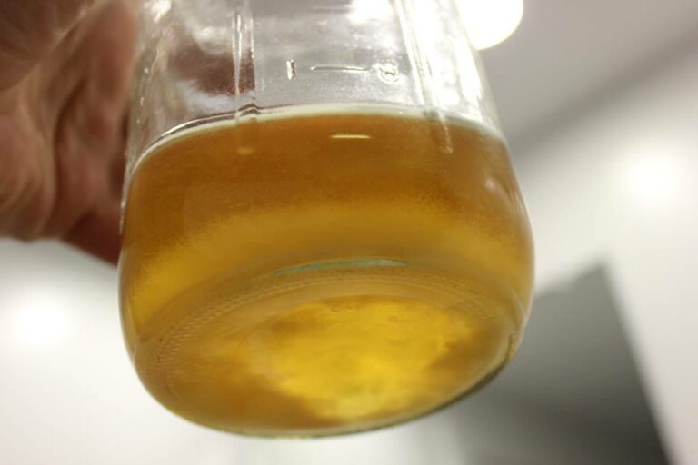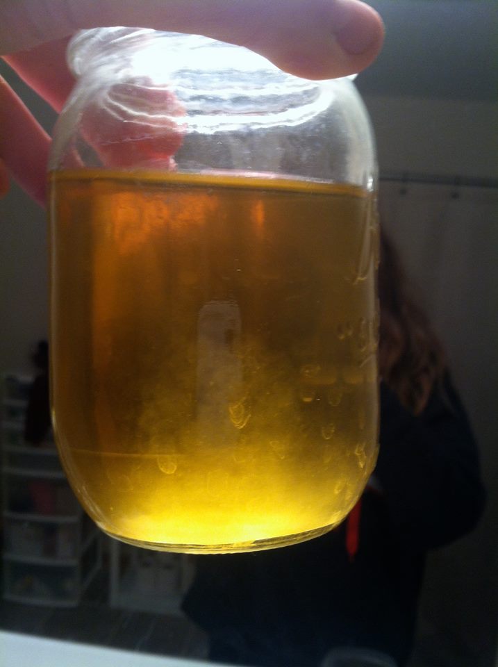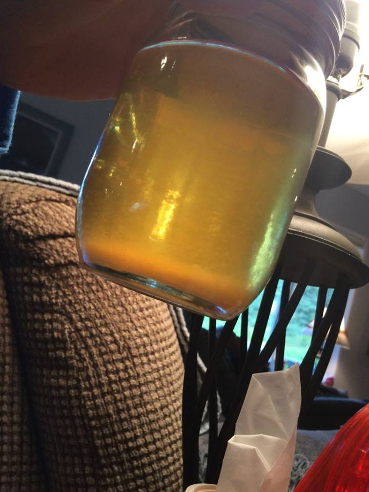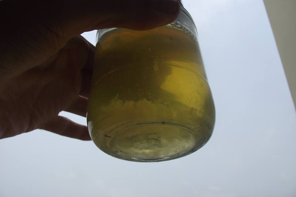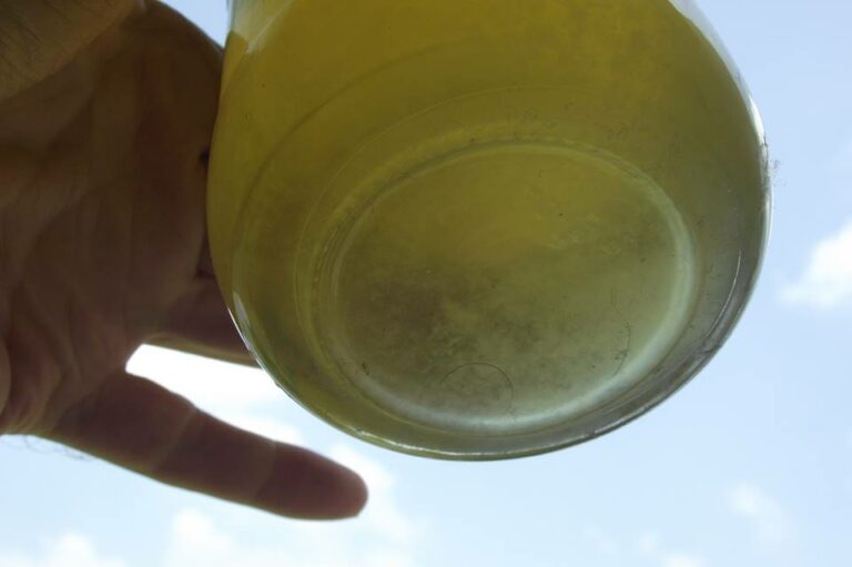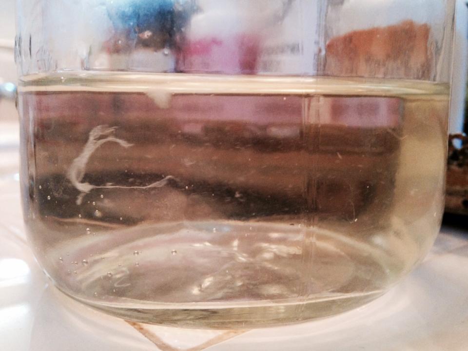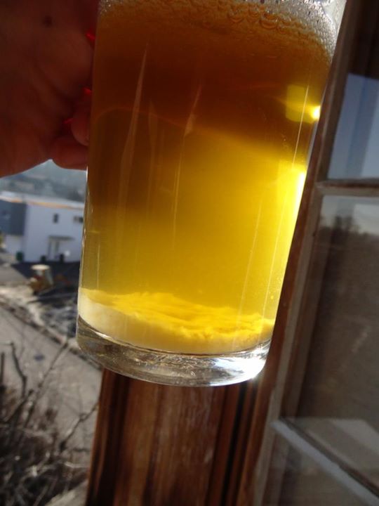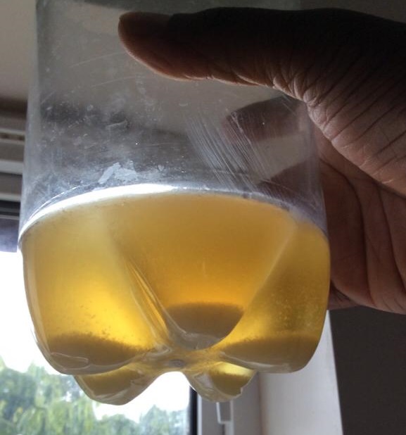 “Just wanted to show [the] difference in sediment when you let it sit, settle and brew. First pic just cloudy, second pic same sample just left for 24 hrs. Camera flash used both pics. It really does amplify sediment particles.” ~ R. W.
